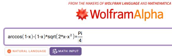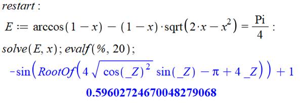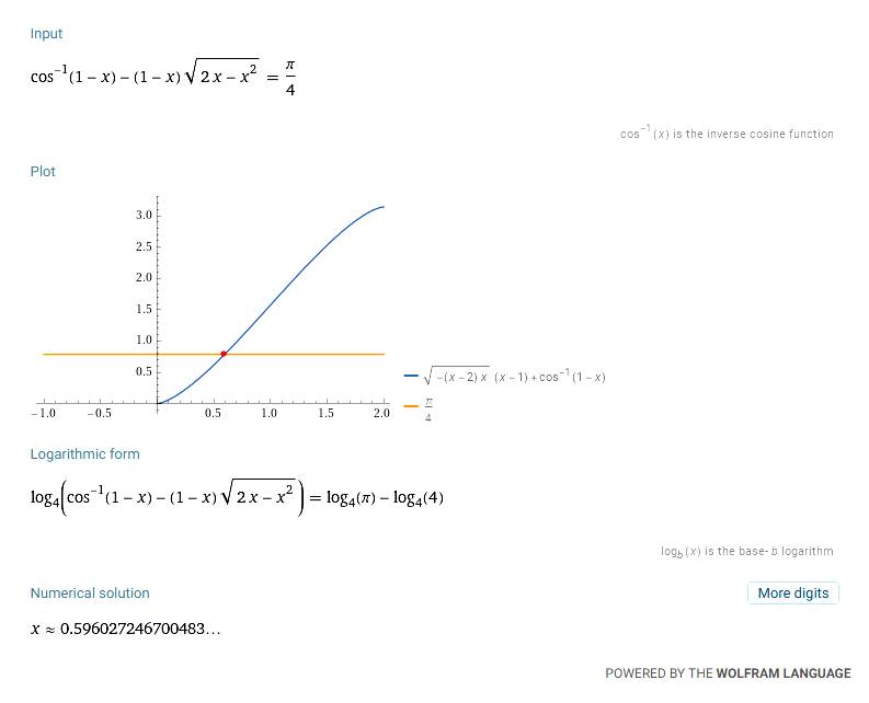 h = 0,596027246700482790681… A = C/4 = π/4 =