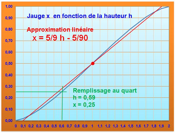 Sommaire de cette page >>> Problème du remplissage de la citerne >>> Quart de citerne >>> Résolution par tableur >>> Résolution avec GeoGebra >>> Résolution avec logiciel >>> Abaque: coefficient de remplissage >>> English corner |