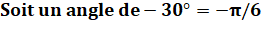 de grandeur. L’angle est très proche de – 30° car la droite verte coupe le cercle