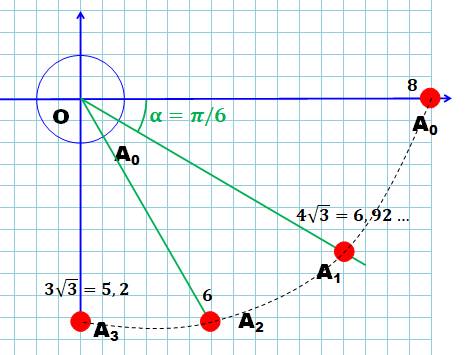 trouve sur l’axe des x, abscisse 8. A1 est le rayon d’angle – 30° et avec