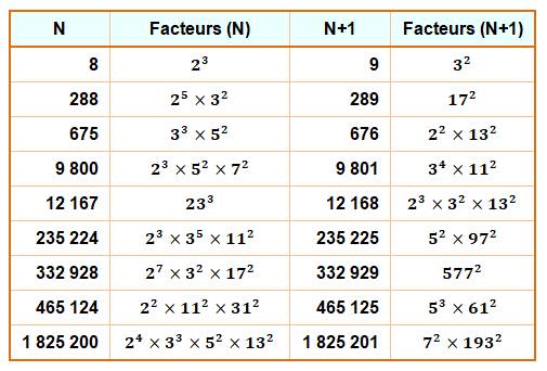 existe une infinité de couples de nombres entiers consécutifs puissants. Déterminer