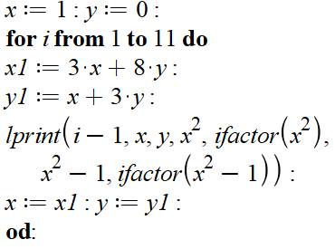 Équation x² – 8y² = 1 (E) Solutions (x0 ; y0) = (1 ; 0) et