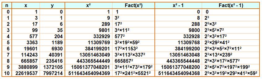 Alors, il existe une infinité de nombres x² et x² - 1 solution |
