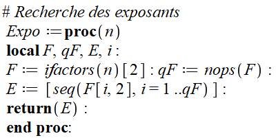des exposants des facteurs de n : Expo(n). Dans F, on place le deuxième terme des facteurs