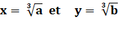 prenant a = 1 et b = racine cubique de 4 Mise en
