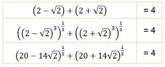 (20-14x2^(1/2))^1/3+(20+14x2^(1/2))^1/3 |