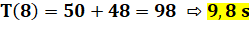 est atteint pour x = 8 et pour 9,8 seconde; un peu moins que dans les deux