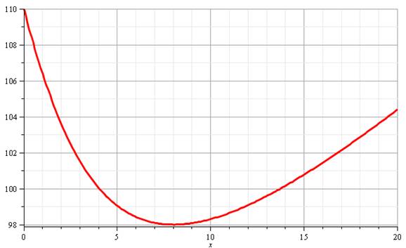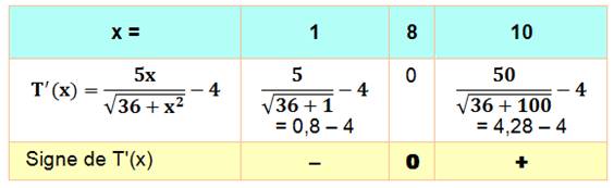 est atteint lorsque la dérivée de T(x) est nulle. |