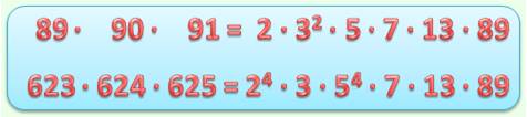 nombres consécutifs. Exemple: deux produits de trois nombres consécutifs avec les mêmes facteurs,