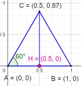 régulier. Le démontrer ! Ce qu'il faut savoir La hauteur du triangle équilatéral vaut: √3/2. Les coordonnées du point milieu est la demi-somme