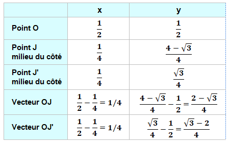 équilatéral vaut √3/2. Coordonnées des points J et J' Système d'axes orthonormé: AB, AD avec AB = AD =