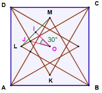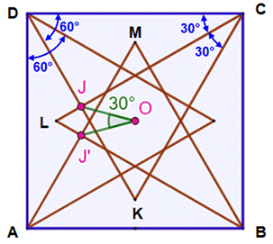 accolés intérieurement au carré. Deux points d'intersections J et J'. Montrer que l'angle JOJ' vaut 30°. Géométrie (figure