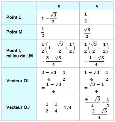 même le point J' est le milieu de AM. Il est alors possible de calculer les coordonnées