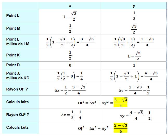 Calculs montrant que OI = OJ (même notation que plus haut)