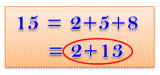 consécutifs est éliminée. Reste 15 = 2 + 13, l'unique somme de nombres de
