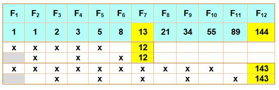 Fibonacci consécutifs. Ces sommes sont éliminées. Seule la dernière somme résiste à ce tri: elle