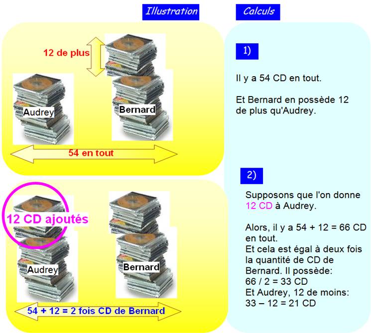 CD qu'Audrey plus 12. B = A + 12 En mettant les CD de Bernard