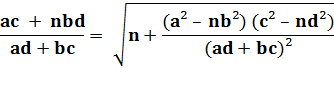 = (a² – nb²) (c² – nd²) = (ac + nbd)² - n (ad+bc)² N