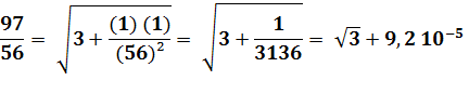 Fraction = 1,73205081001473 Racine de 3 = 1,73205080756888 |