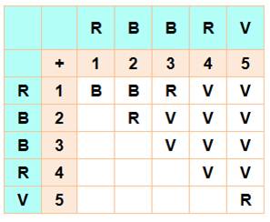 Cette table d'addition colorée montre que dans tous les cas: a + b =