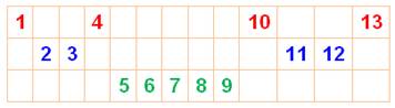 13, mais avec 14, impossible d'y échapper. Coloriage pour n de 1 à 13