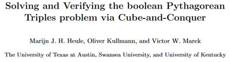 2016, Heule, Kullmann et Marek déclarent avoir démontré le problème des triplets bi-colorés de