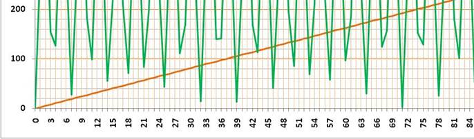 les multiples de Pi La courbe verte les