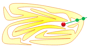 Sur l'illustration, le point rouge est à l'extérieur car le chemin vert coupe