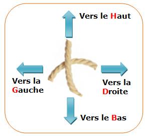 pointe dans quatre directions symbolisée par les lettres G, D, H et B. |