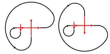 courbe se croisant une fois est définie par la direction d'entrée et celle de