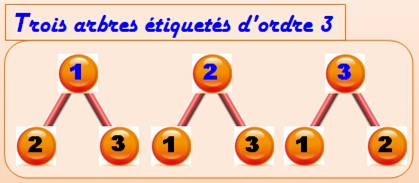 Soit trois possibilités (1, 2 ou 3). Il existe seulement trois arbres étiqueté d'ordre 3. Trois autres, en