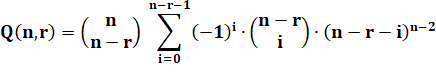 Exemple: Q(4, 2) = 12; Q(4, 3) = 4 Q(5, 2) = 60; Q(5, 3) = 60; Q(5, 4) = 5 Q(6, 2) = 360; Q(6, 3) = 720; Q(6, 4) = 210; Q(6,