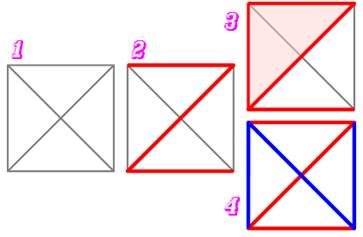 créent pas de triangle. En 3), un autre trait rouge et, alors, un