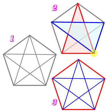 avec un sommet commun (jaune) En 3), une figure où tous les traits sont
