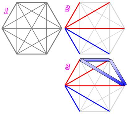 hexagone, il est impossible de ne pas créer un triangle monochrome. |