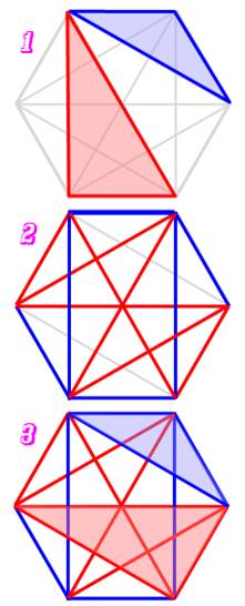 mutuellement ou trois personnes qui ne se connaissent pas du tout. Ou encore, si on colorie un hexagone et ses diagonales en rouge et en