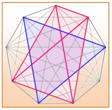 complets bleu ou rouge existe inévitablement dans un polygone de k sommets. Notez que l'on s'intéresse à des polygones de deux couleurs seulement. |