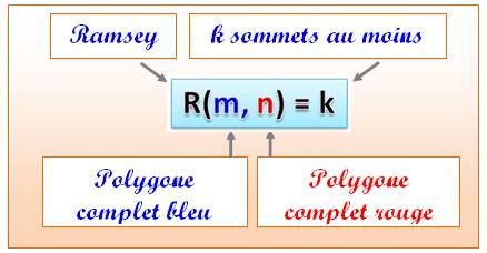 contenant un nombre arbitraire d'arrêtes comporte soit m sommets tous reliés entre eux soit n sommets tous non reliés entre eux. Une autre formulation dit que le nombre de Ramsey
