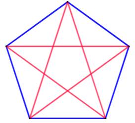 le pentagone complet avec deux couleurs sans créer de triangle. Notez bien que les