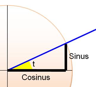 Pour l'angle t et pour un cercle de rayon unité: