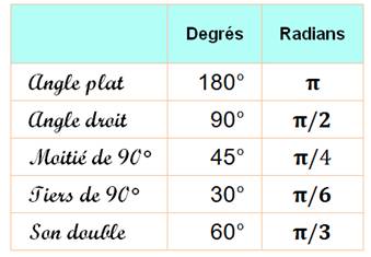 le cercle trigonométrique. Note: