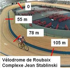 un vélodrome avec un anneau de 250 m de long. Ce cycliste sait qu'en dix