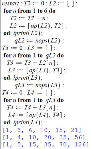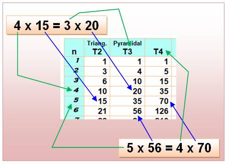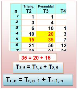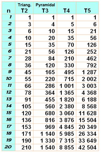 processus d'empilement est répété: les pyramidaux Tn sont la somme cumulée des pyramidaux Tn-1 . Par exemple: T5, 20 =