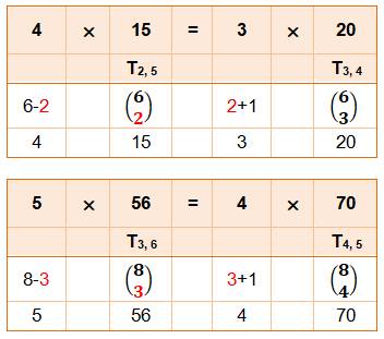 rang est égal au numéro de ligne ou de colonne moins 1. T5,10 = 2 002 est en colonne 5 et ligne 9 ou en ligne