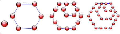 construits en déposant points sur des hexagones gigognes. L'un dans l'autre,