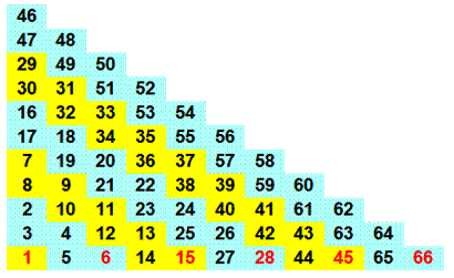 puis 12+1, etc. Note: la diagonale 3, 10, 21, 36, 55 … donne la liste