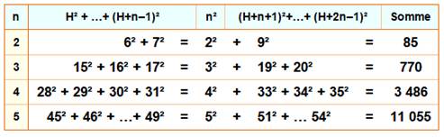 remplacé par n². Exemple: la 20e égalité commence par 780 et