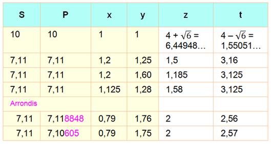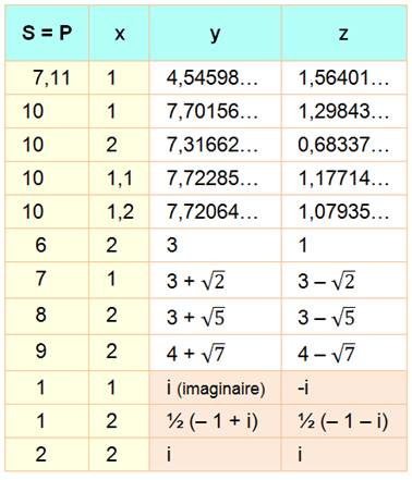 de R et X P = R/Y S = R – X y et z sont les racines de y² – Sy + P = 0