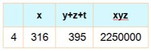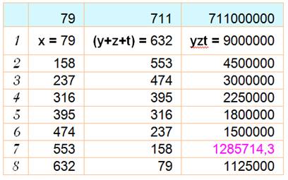 x = 22 x 79 y = 2i z = 2i' t = 2i'' avec y + z + t