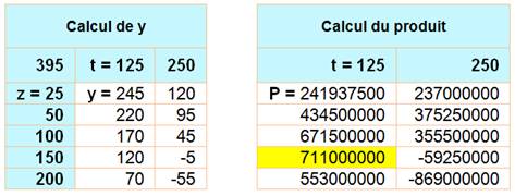 125 x 4 = 500; 125 x 3 = 375. z = t = 250 (toute autre somme